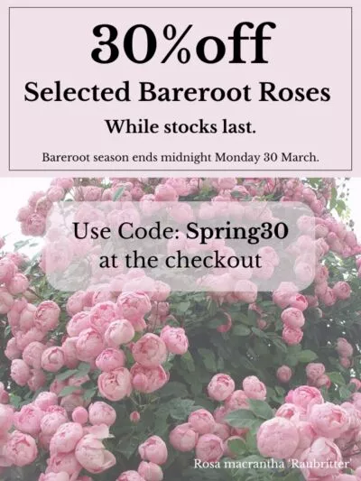 Most of our roses can be purchased bare root (dormant) for delivery from November until March, in addition we also offer a selection that can be bought potted in peat-free compost. Good cultivation in virgin soil, strict grading and minimal storage ensure that they arrive in the best possible condition.